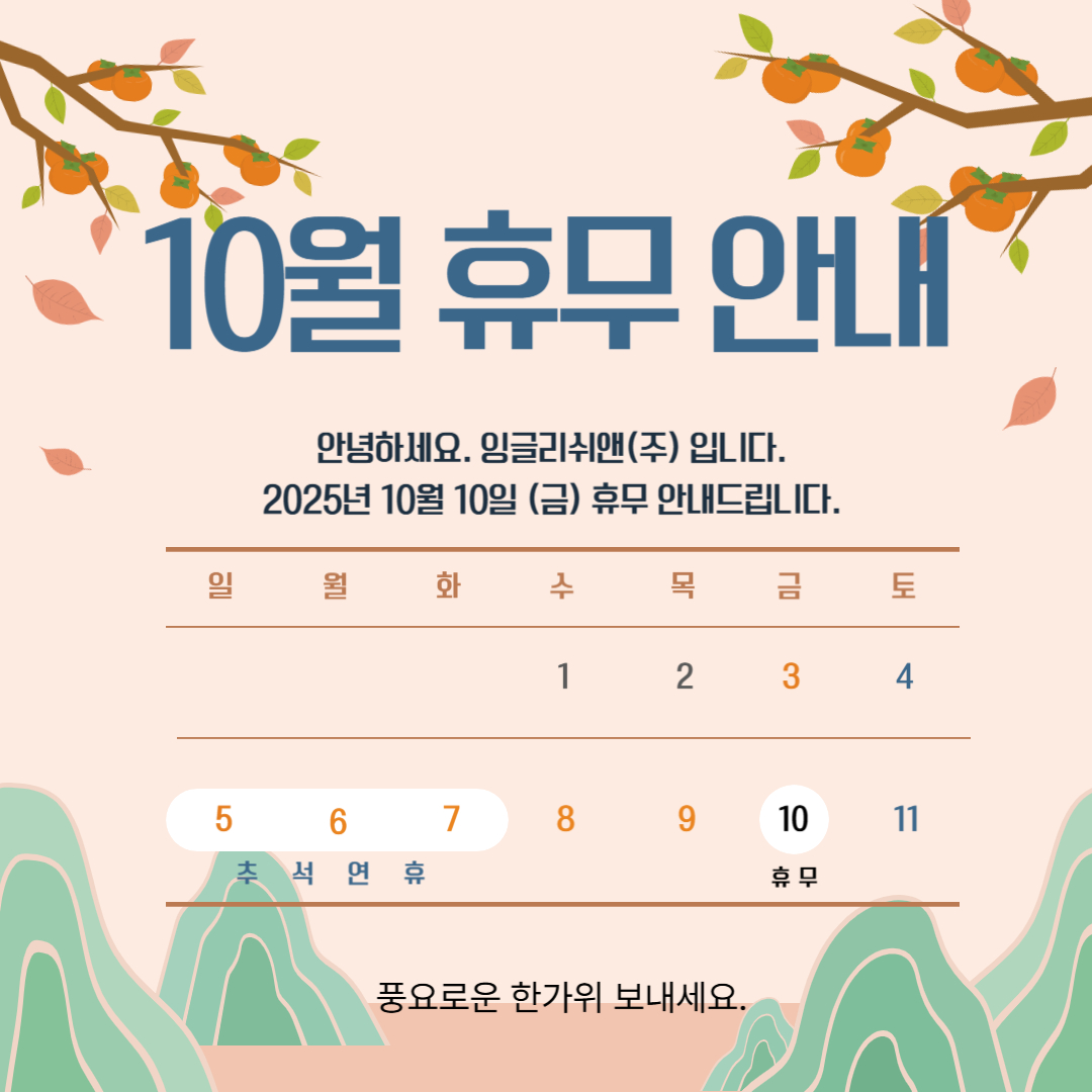 2025년 10월 10일 (금) 휴무 입니다.